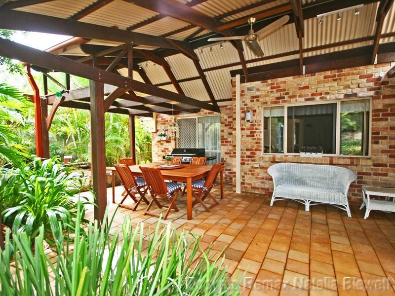 The outside is to die for. As well as the massive undercover entertainment area with a pitched roof, the well established landscaped gardens have a definite tropical feel and you could almost get lost wandering through the palms.