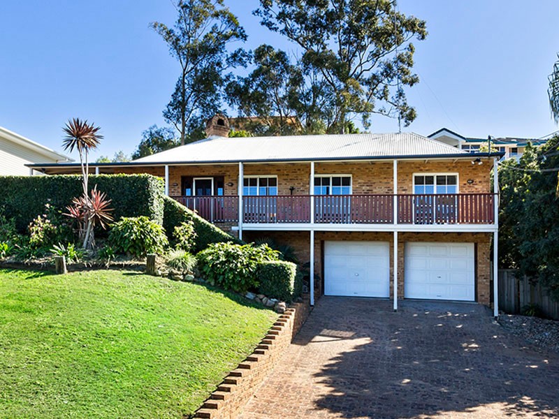 An expanse of lawn sweeps up to this 2 level home, interspersed with shrubs, foliage and hedges giving privacy.