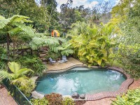 The ground floor is dedicated to casual entertaining, where you can relax and enjoy all the benefits of owning this home, with a massive bar area, including a full wet bar and built in trophy cupboard, and large enough for a pool table. The whole entertainment room is serviced by a powder room with toilet and vanity. Double doors lead out onto the large undercover entertainment area and, beyond this is the fully landscaped in-ground, free form, salt water pool. There is even a kiddies cubby house to keep them busy.