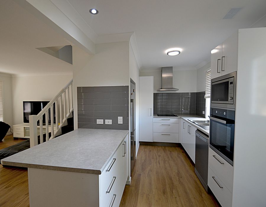 • Stylish kitchen with a full range of stainless steel appliances including a built-in microwave & dishwasher. Crisp white cabinetry is complemented by neutral benchtops and striking dark splashbacks. Cupboard, pantry and bench space is plentiful thanks to the clever design of the kitchen which maximises storage space.