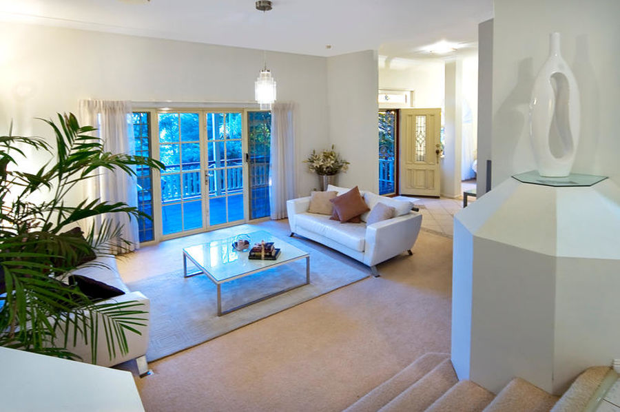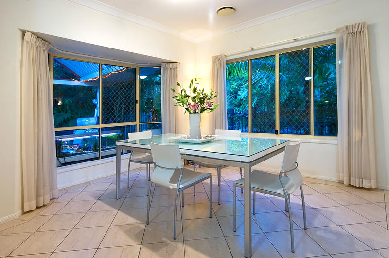 The formal sunken lounge is fully carpeted and fits in well with the sophisticated open plan design. Glass doors lead from the lounge out onto the covered deck, taking full advantage of the magnificent views.