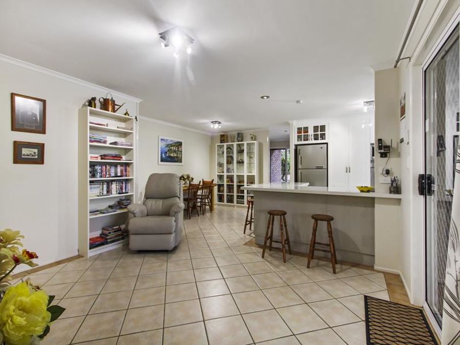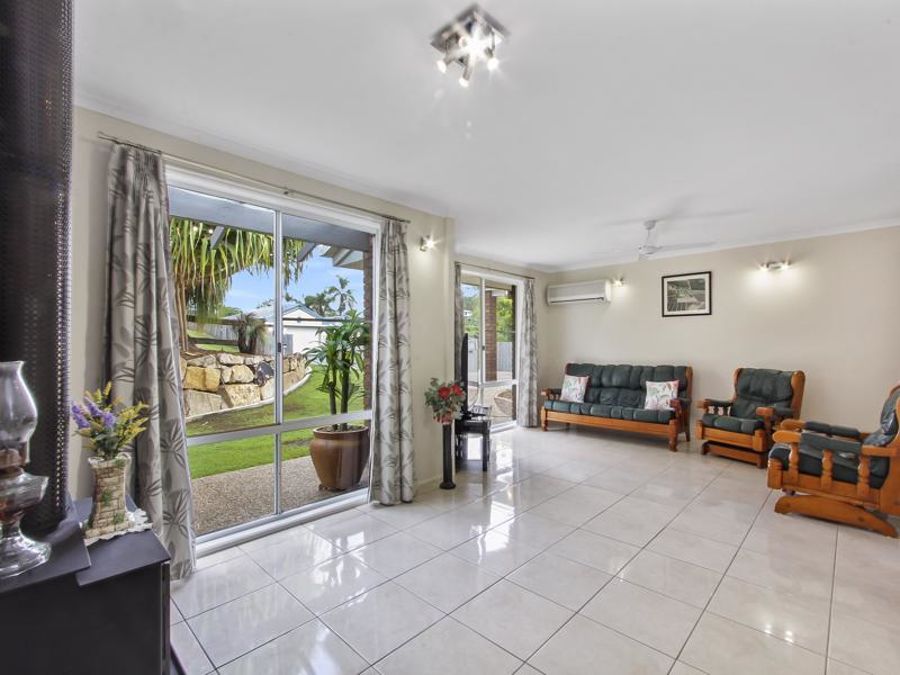 The home is bright and spacious with lovely green outlooks from living areas, kitchen and Master bedroom. Two large separate living areas add an extra dimension to family living while the outdoor entertainment area is very spacious and takes full advantage of the views and breezes. Bird lovers will enjoy the frequent visits from the resident "Cockie"- Donald as well as Rainbow Lorikeets, Galahs, King Parrots, Rosellas and Corellas. The gardens boast Coconut Palms, Grass Trees, Pony Tail Palms and a beautiful Pandanus Palm, as well as a very productive Bowen Mango tree plus many more.