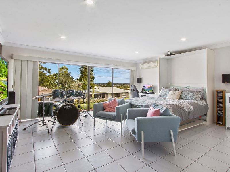 There are 4 bedrooms, all with robes, the master has its own ensuite, while the 4th bedroom is 6m2 with a fold away queen size bed, and external access, lots of options here - games/media room, teenage retreat, Granny Flat,( just add a kitchenette, the bathroom is a few steps away ) or simply a super size bedroom!